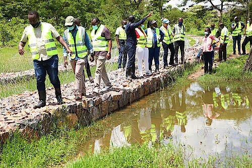 After walking the entire wetland, the two Ministers commended the tremendous work being done by the project contractor (Afri Landscapes Ltd) and they both appreciated the fact that the project will not only conserve the wetland ecosystem with so far about 62 local plant species but also promote greening of the City of Kigali through provision of a tourism park and its other associated services.